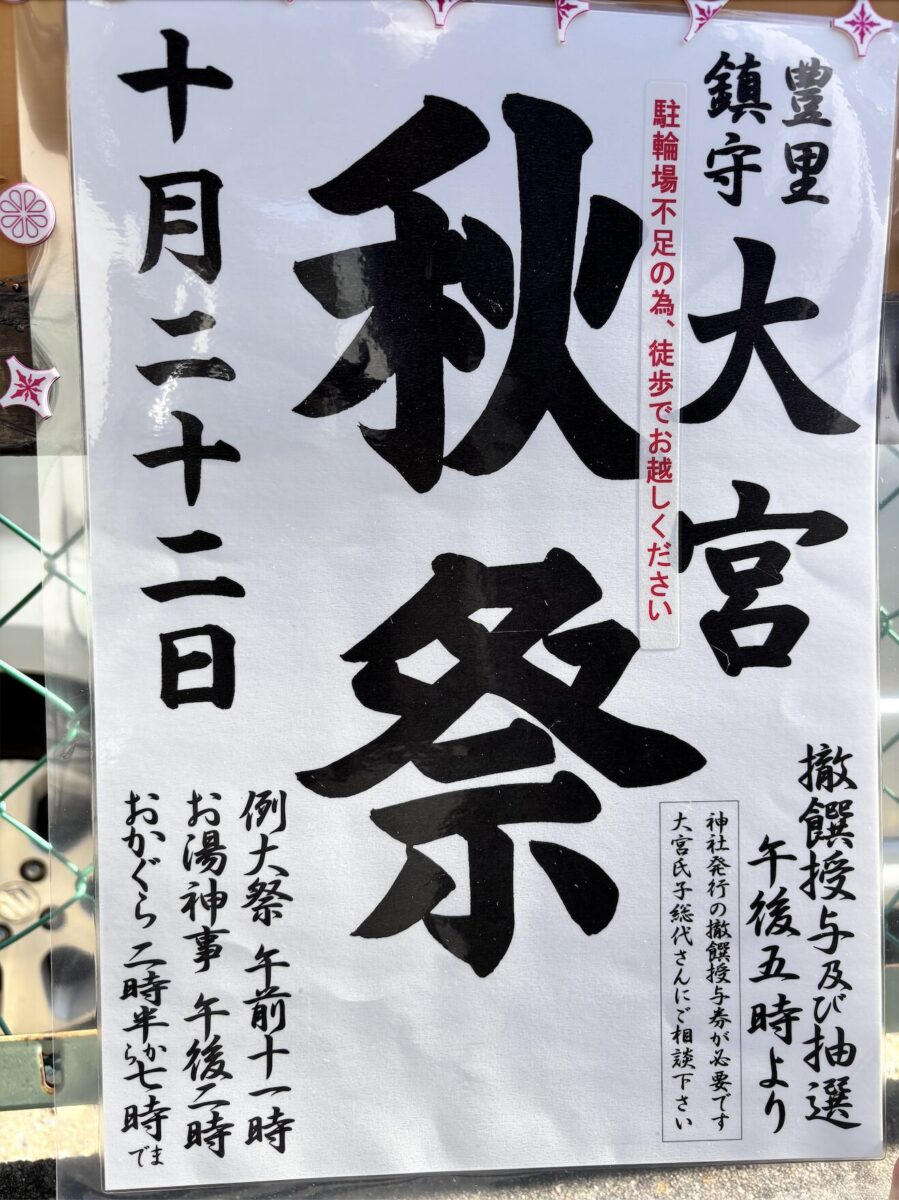 【東淀川区大道南】豊里大橋そばの大宮神社で「秋祭」開催!(10月22日)
