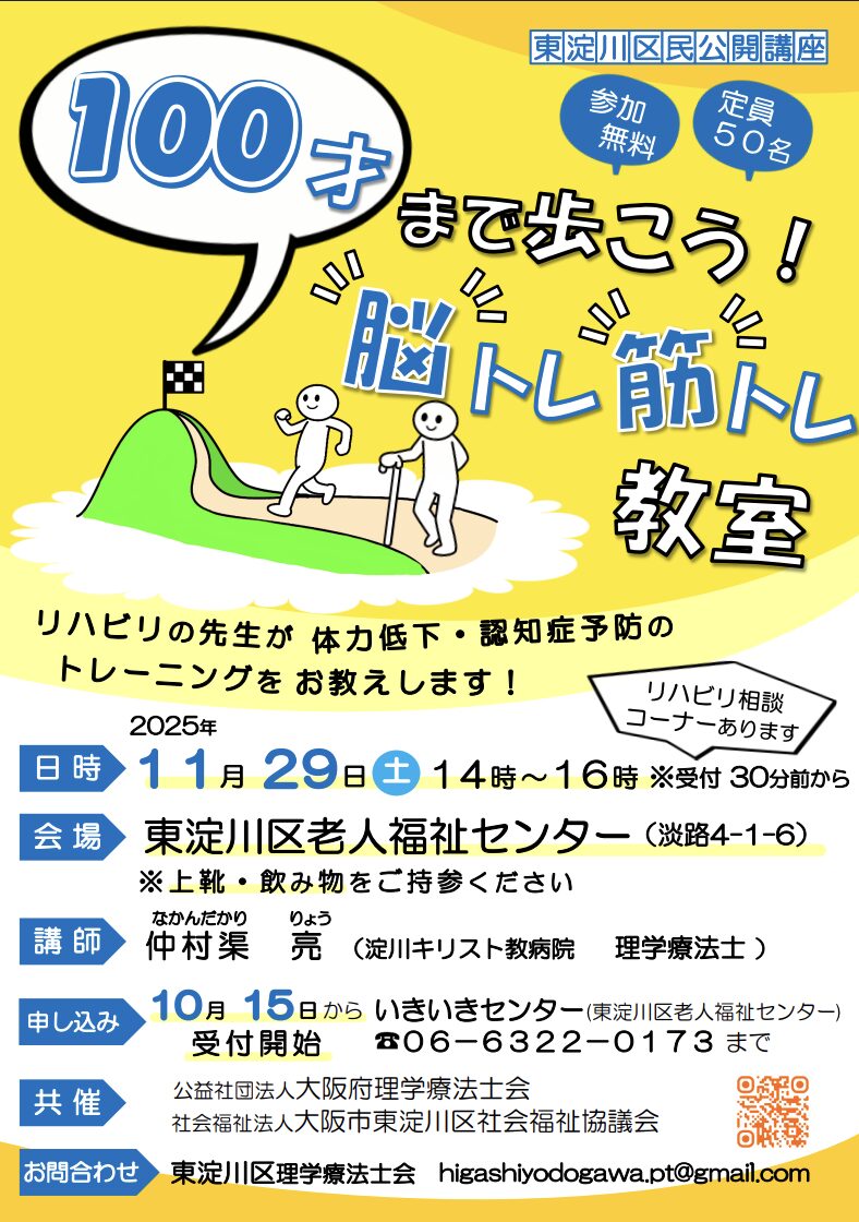 東淀川区民公開講座 『100歳まで歩こう!脳トレ筋トレ教室』