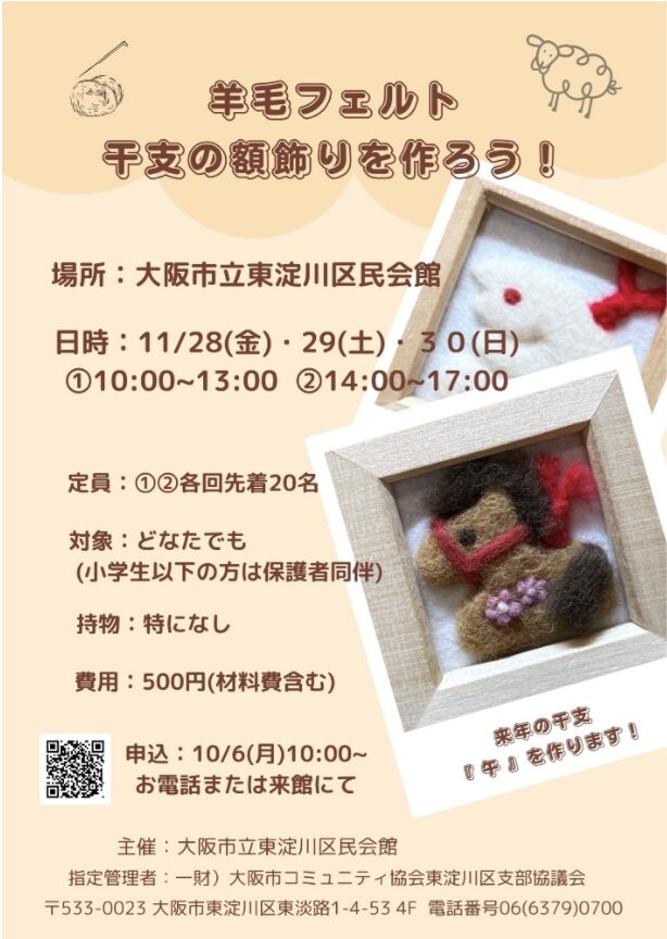 羊毛フェルト 干支の額飾りを作ろう|東淀川区民会館