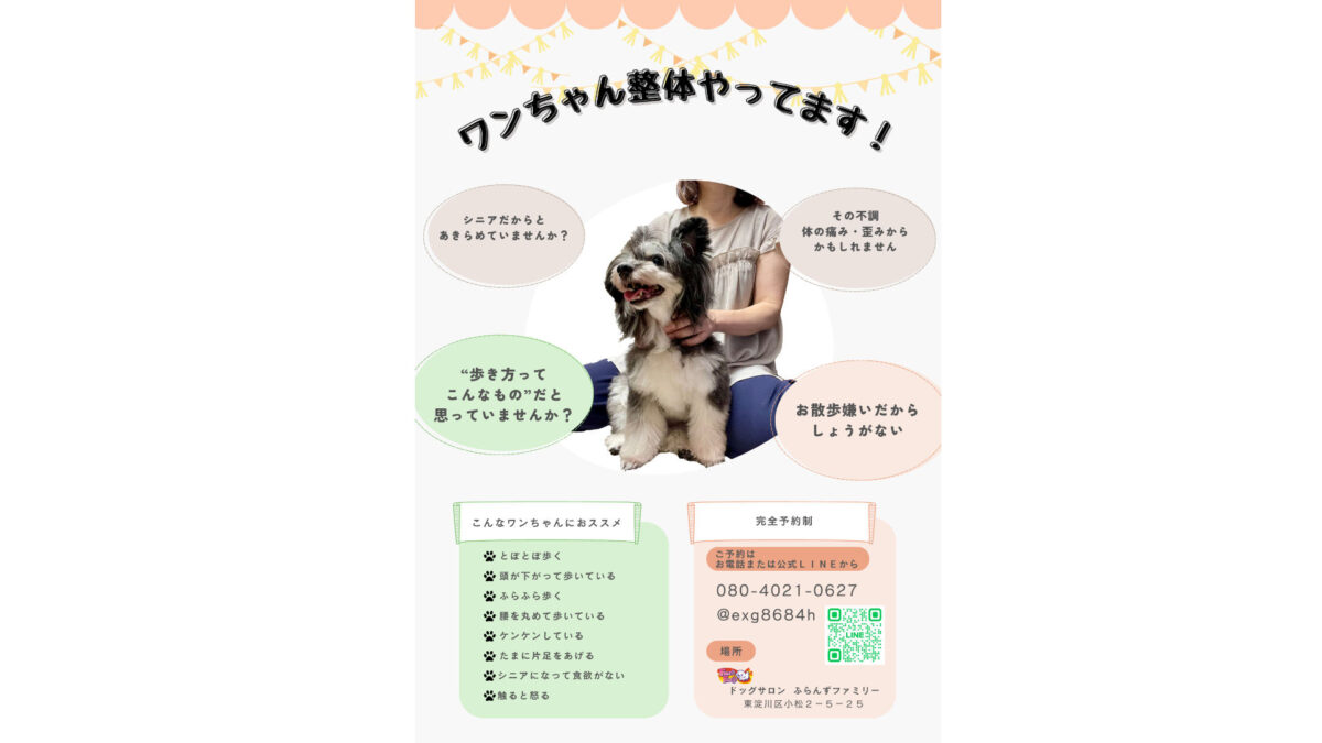 ワンちゃんのことを考え、美容はもちろんのこと健康面などにも気を配ってトリミングをさせていただいております。総合的なご相談もしていただけるよう努力を重ね、できる限り一生のお付き合いをさせていただけたらと思っております。
