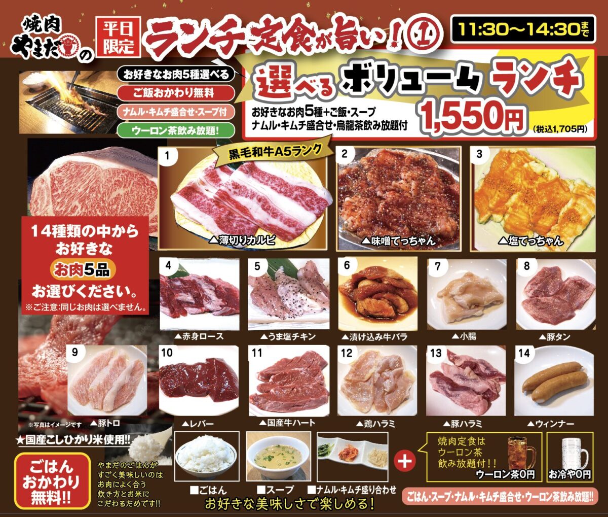夜は炊き立て銀シャリを、A5ランク黒毛和牛や名物味噌てっちゃんと共にお召し上げり下さい。