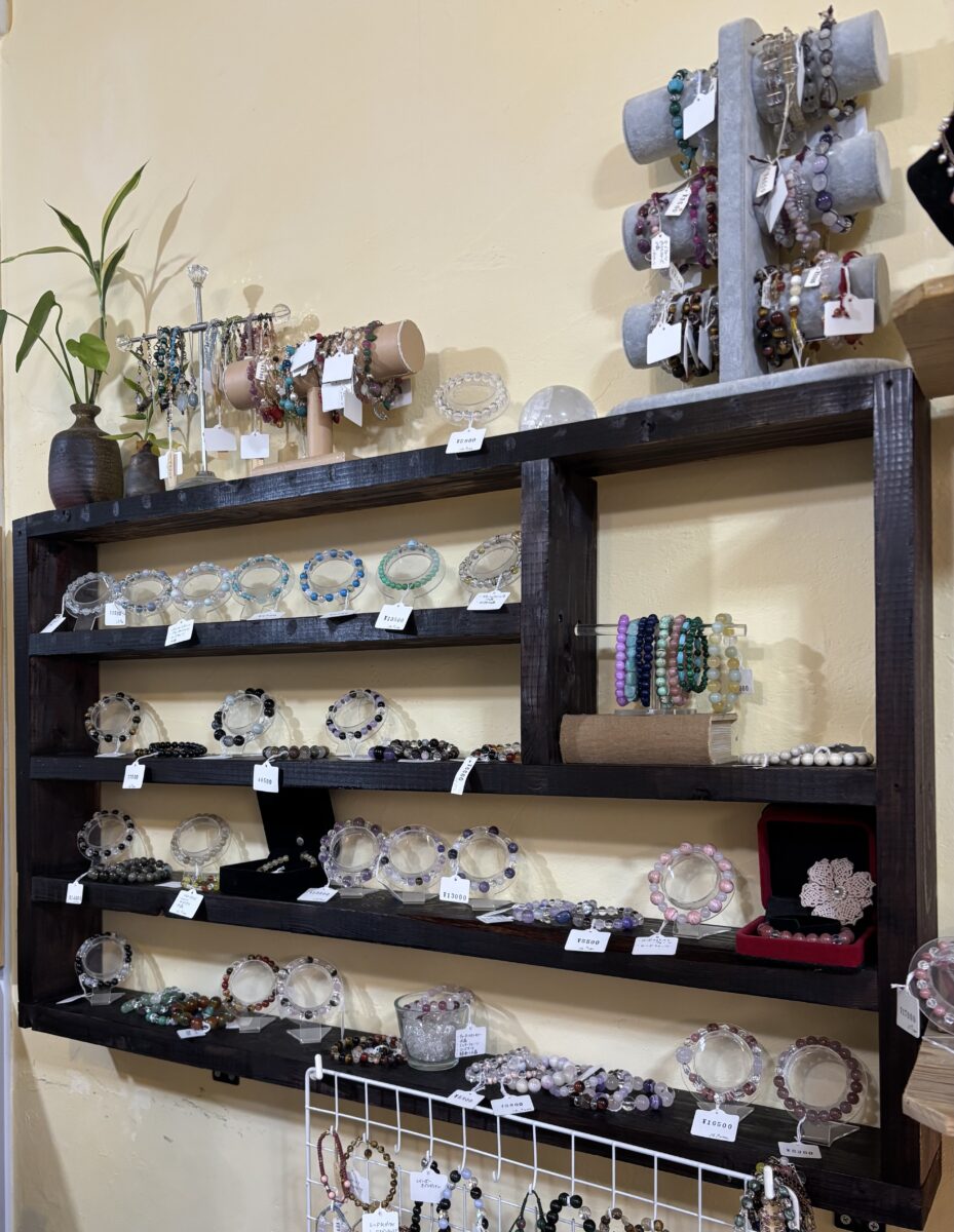 小さな店内にたくさんある作品は、全て天然石と手作りが大好きな店主の手作りです。既製品にはない、天然石の繊細の魅力をとらえた、装飾だけでなく、心まで飾ってくれるようなアクセサリー作りを目指しています。